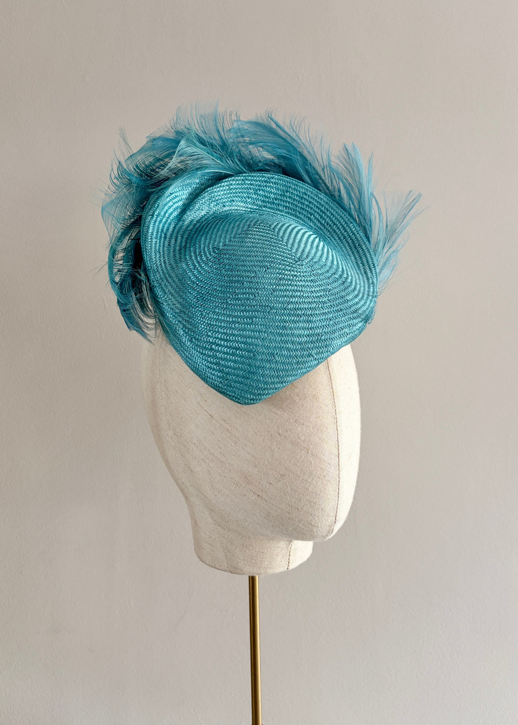 A hand-sculpted, heart-shaped cocktail design that redefines feminine elegance. Crafted from fine straw and finished with a dramatic sweep of goose feathers, it creates a striking “swanning” effect—bringing movement, texture, and flair to this standout headpiece. Perfect for weddings, race days, or any occasion that calls for confident sophistication.