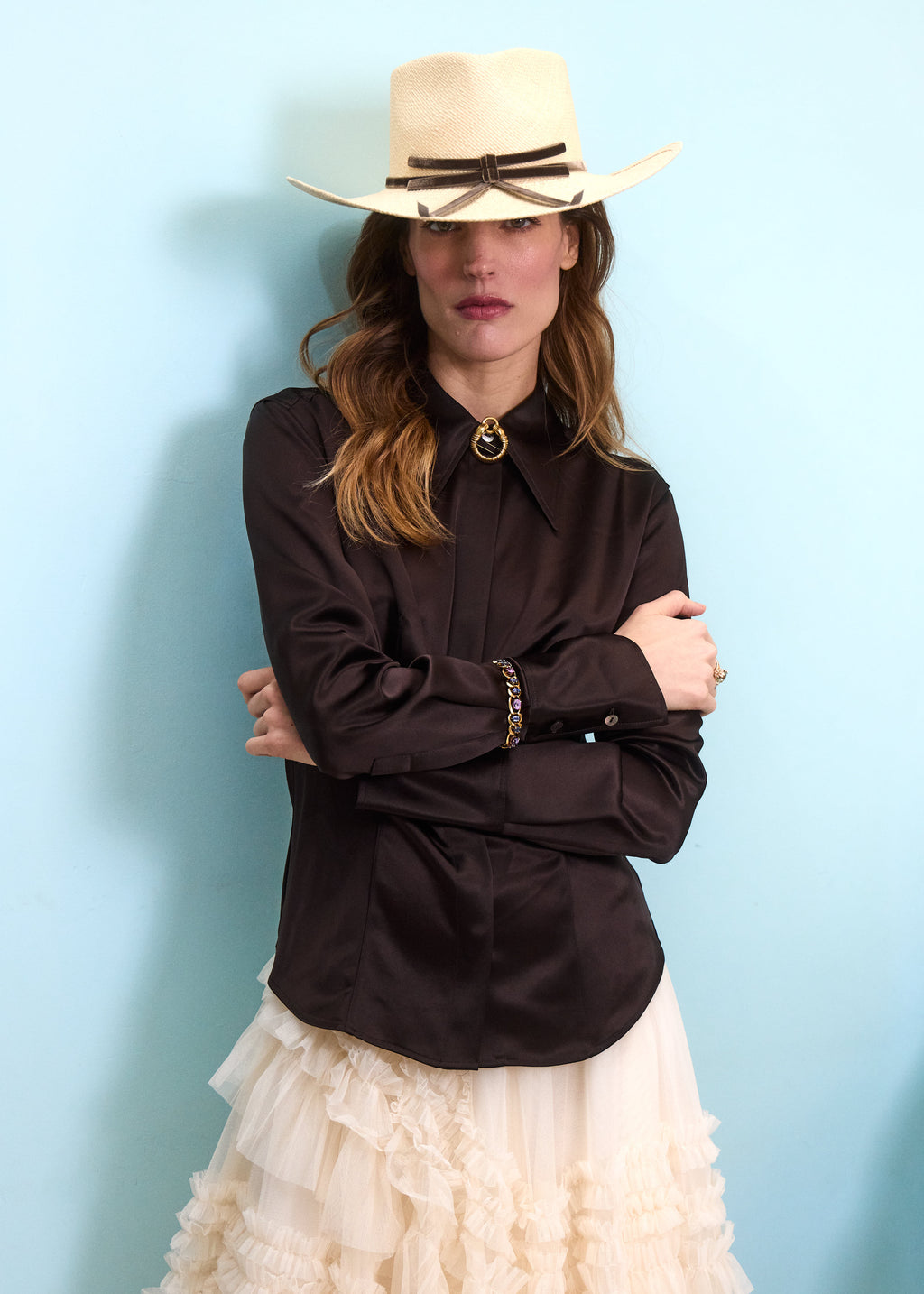 Crafted from durable yet lightweight Panama straw, this elegant take on the classic cowboy hat exudes effortless summer charm. Trimmed with a soft velvet double bow, it strikes the perfect balance between rugged and refined. Hand-finished by our dedicated team, this versatile style transitions seamlessly from city streets to sun-soaked beaches.