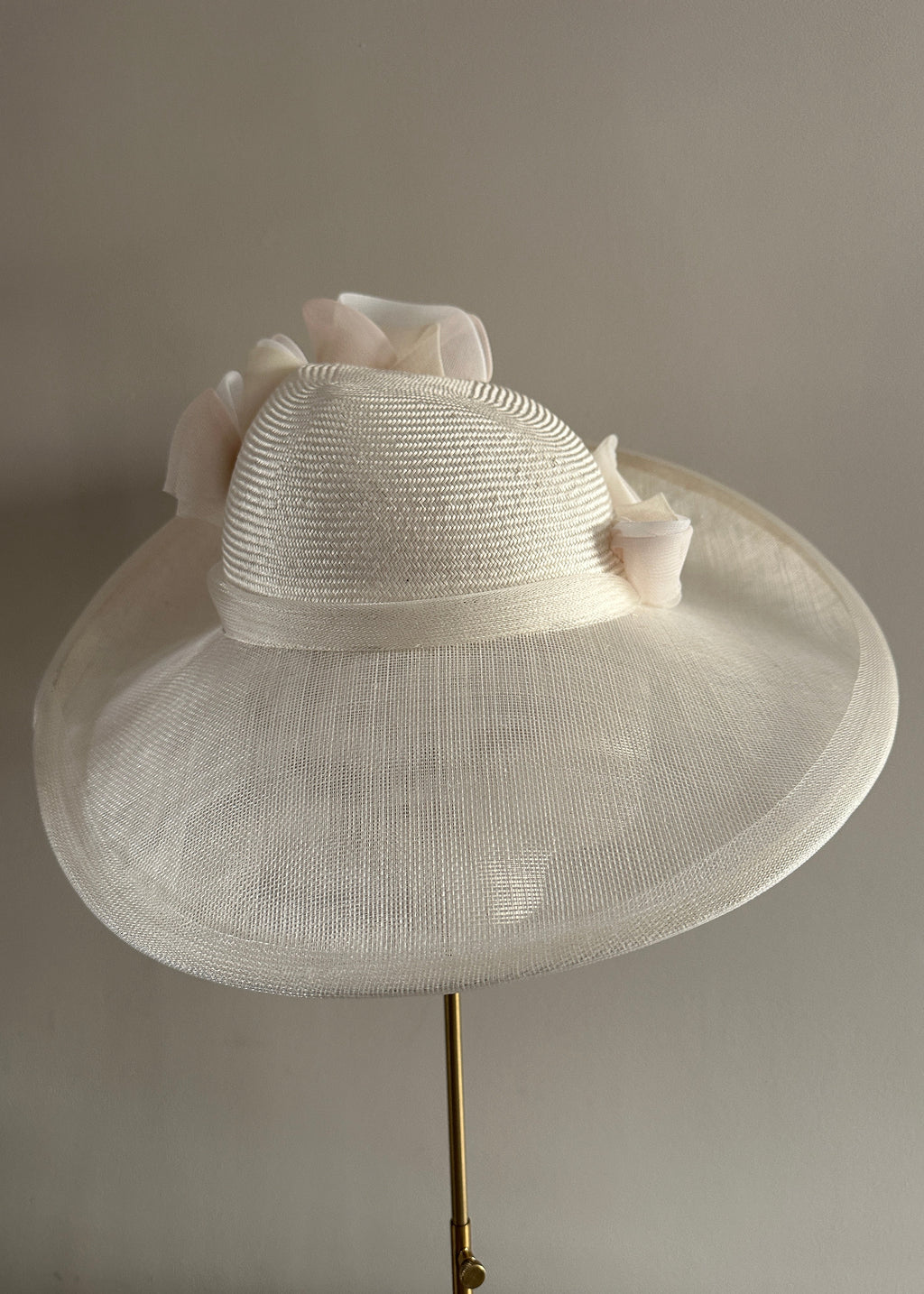 A striking statement piece, this oval brimmed hat is handcrafted from fine straw and finished with sculpted crin waves in white with a touch pink tones. The sweeping design adds movement and modernity, while the oversized brim creates a flattering, elongated silhouette.