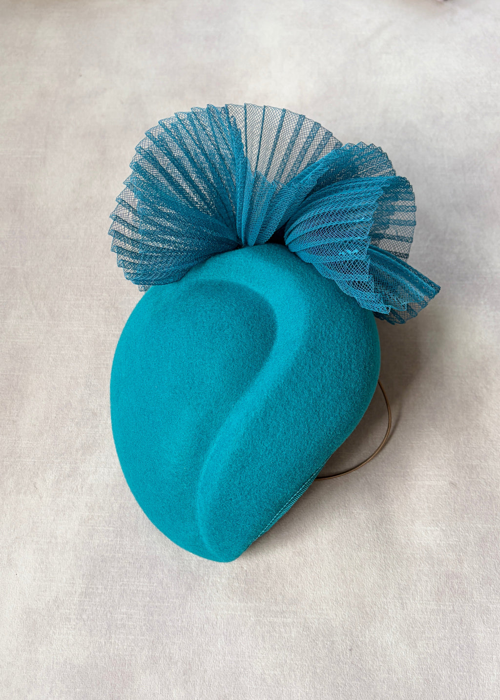 A beautifully refined cocktail hat crafted from premium wool felt and finished with elegant pleated crin detailing. Designed to sit gracefully at the front of the head, it adds structure and sophistication to any winter look. Secured with a discreet hair-coloured elastic, it pairs perfectly with both updos and loose hairstyles.