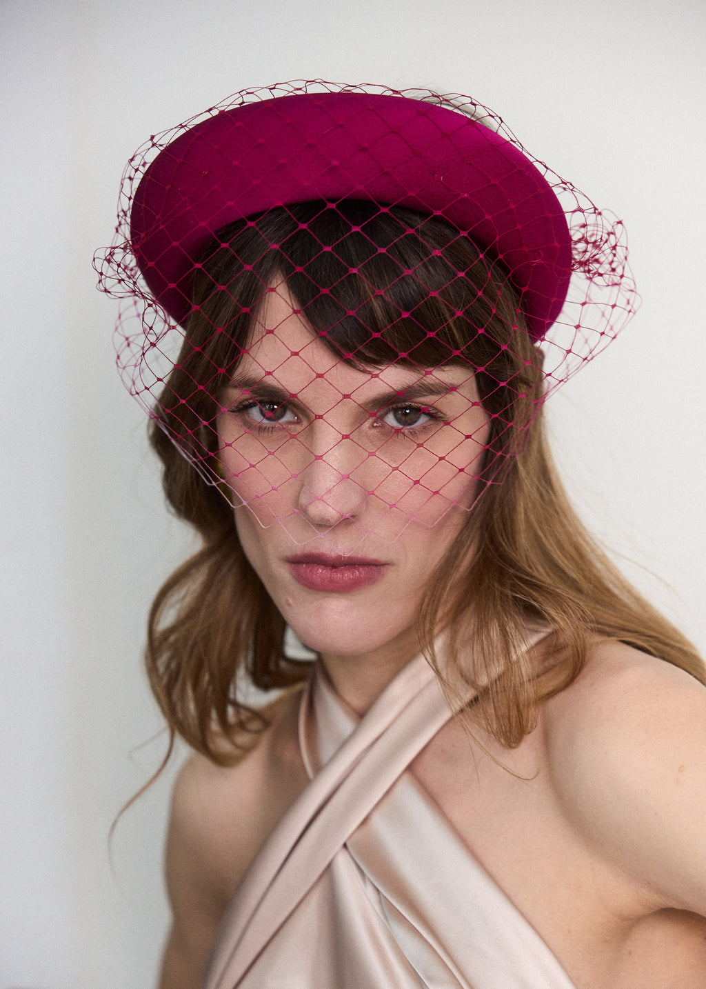 A signature Jane Taylor London design that adds contemporary elegance to any formal look. Handcrafted from luxurious Italian satin and finished with a tonal ombre veil, and secured with a discreet, hair-coloured elastic for a seamless fit. A refined, fashion-forward choice for special occasions.